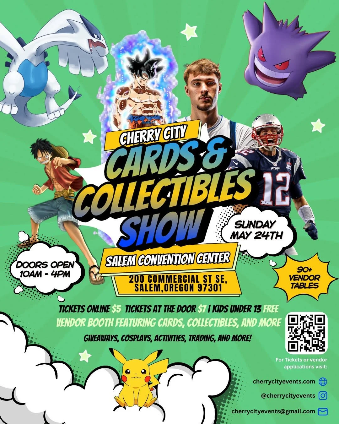 We’re excited to announce our third Cherry City Cards & Collectibles Show! Our first and second show was a huge success thanks to all of you who came out to support us, and we can’t wait to do it again. This time, we’re planning even more fun, more vendors, and more giveaways to make the experience even better. We hope you’ll join us and help make our second show an even bigger success!